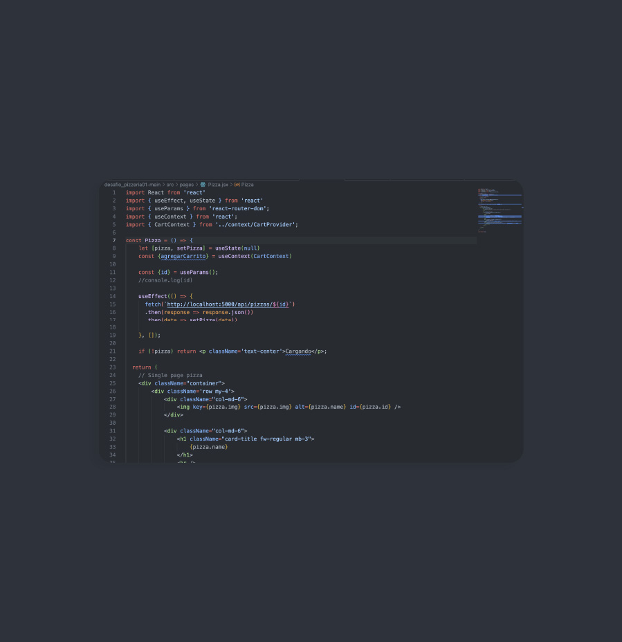 Aplicación de e-commerce en React con consumo de API para productos, navegación entre páginas internas y gestión dinámica del carrito.